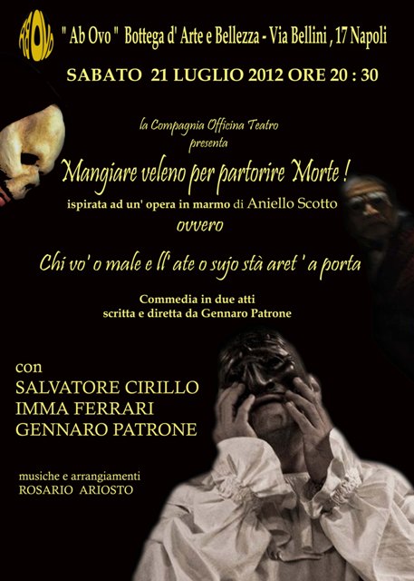 Questa Commedia nasce grazie anche ad un’opera scultorea in marmo , dal titolo : “puoi mangiare veleno e partorire morte” , dell’ artista Aniello Scotto , collocata nel Polo museale di Santa Maria delle anime del Purgatorio di Napoli . Come si evince dall’ opera , essa racchiude ed evoca una molteplicità di messaggi ; opposti e contrari , il mistero dopo la vita , la morte , il sacro , il quotidiano , il lavoro, la lotta per la sopravvivenza…queste immagini hanno dato vita alla creazione di questa pierce teatrale.